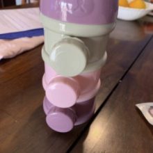 Great for diaper bag organization! Includes a funnel under the top piece to makes bottles on the go easy! I havenβt tested it but Iβm sure 3 scoops will fit not problem if not more. Someday I can use for snacks etc!